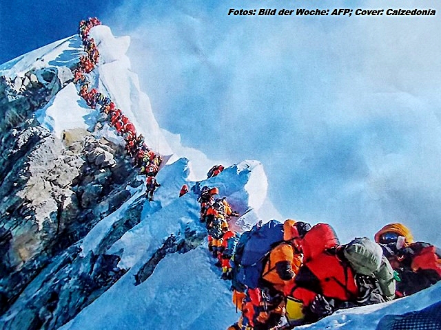 Hunderte Menschen stehen Schlange zum höchsten Punkt der Welt (siehe unfassbares Foto). Die Saison auf dem Mount Everest ist kurz, das Zeitfenster eng. In diesem Frühjahr, leset und staunet, wurden 381 Genehmigungen an Bergsteiger ausgestellt. 10.000 Euro kostet übrigens die Lizenz von den nepalesischen Behörden. Langer Aufenthalt kann in dieser extremen Höhe von 8600 Metern tödlich sein. Innerhalb von zwei Wochen bezahlten elf Menschen dieses Abenteuer mit dem Leben.
