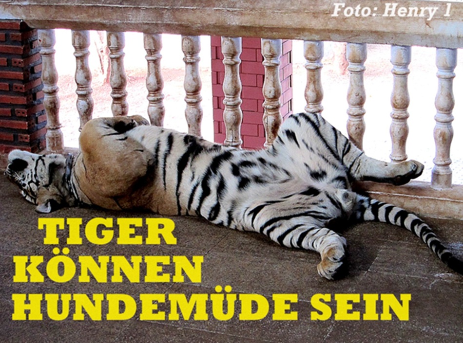 Hunde können “hundemüde” sein, aber auch Tiger können durchaus “hundemüde” sein (siehe Fotos).