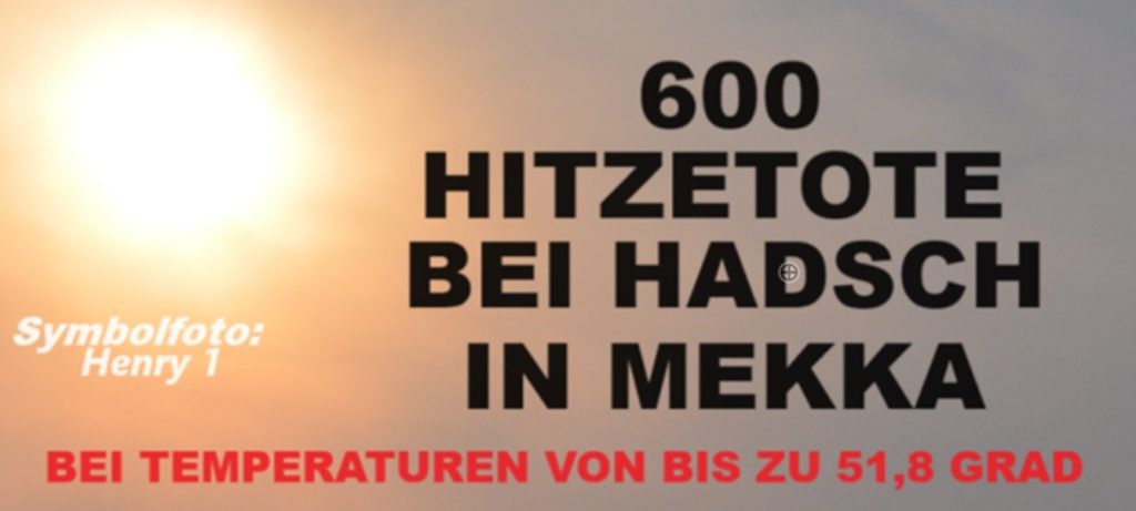 Wortmeldung des Kollegen: “Leider gab es auch in den vergangenen Jahren schon viele Tote in Mekka. Allerdings bei solchen extrem hohen Temperaturen von fast 52 Grad ist das sicherlich für viele ältere und Kranke Pilger ihr Todesurteil.”