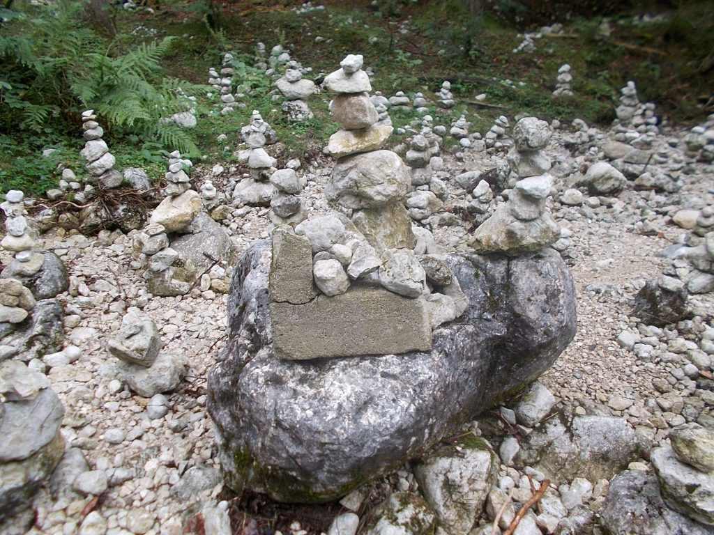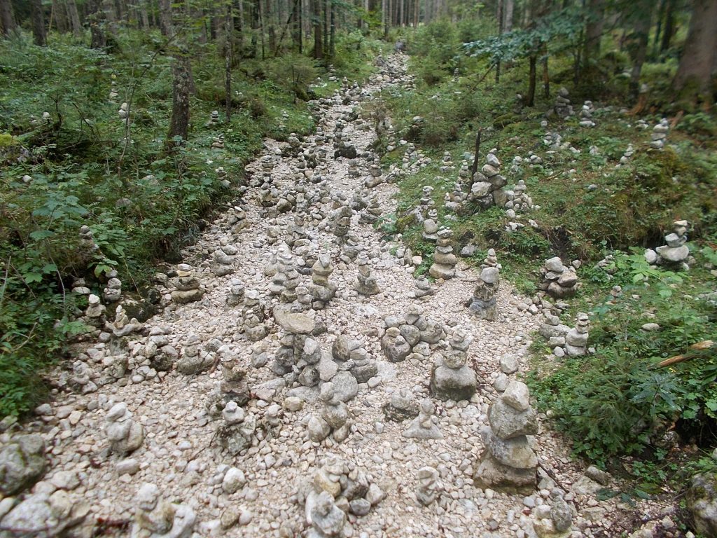 Steinmännchen auch Steinmandl oder Steindauben genannt, sind aufeinander gestapelte Steine in Form kleiner Hügel oder Türmchen.