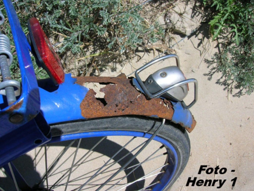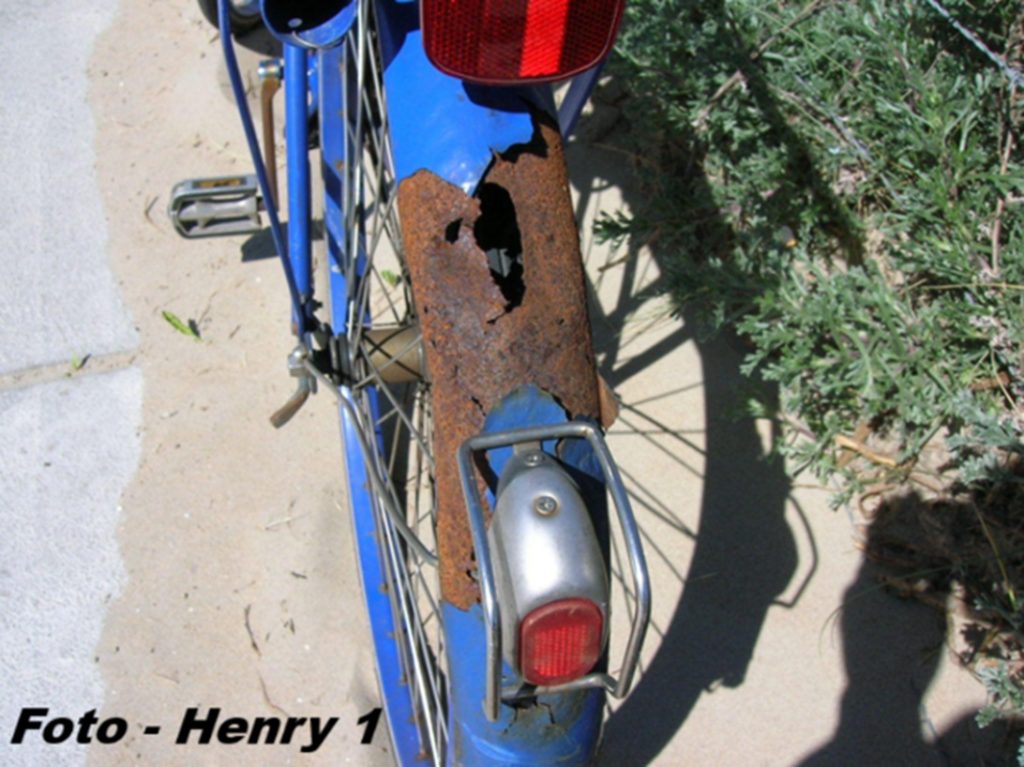 Vermutlich hat kaum jemand auf so einem stark durchgerosteten Kotschützer solch ein “wunderschönes Rücklicht” gesehen.
